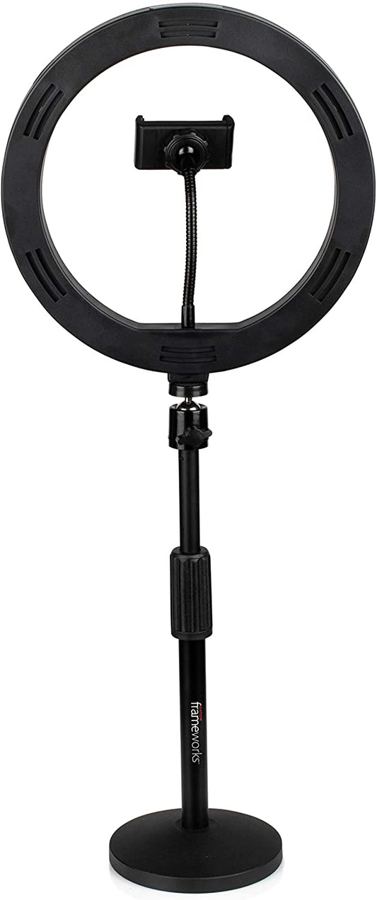 Gator 10-Inch LED Ring Light Stand with Phone Holder & Tripod Base