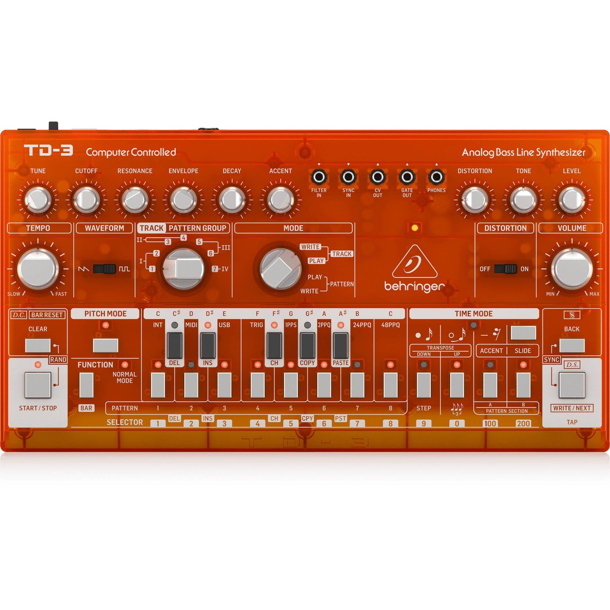 Behringer TD-3-TG Analog Bass Line Synthesizer with 16-Step Sequencer - Tangerine