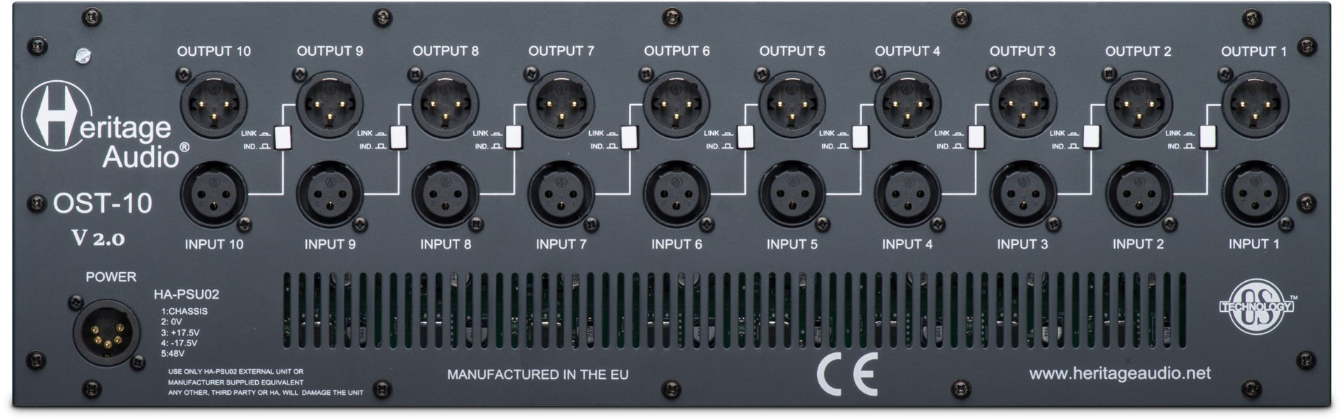 Heritage Audio OST-10 V2.0 500 Series - 10 Slot Rack with OS Tech